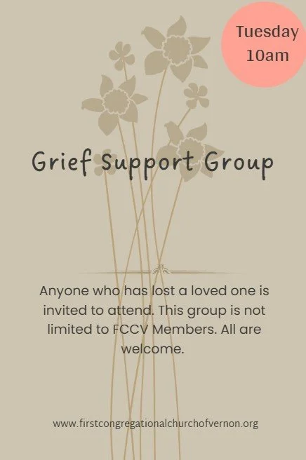 Anyone who has lost a loved one is invited to attend, and the group is not limited to FCCV members. ALL are welcome and you can bring other family members and/or a friend to the group. Any further questions, please call the FCCV Church office at 860-875-7580.